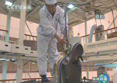 工作人員安裝神舟七號飛船座椅