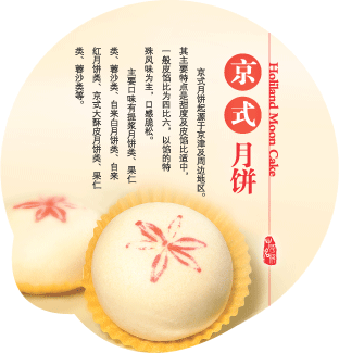 京式月餅是北方月餅的代表品種,花樣眾多。京式月餅起源于京津及周邊地區(qū),始于明代,盛于清代。是滿漢食文化的重要組成部分。其主要特點是甜度及皮餡比適中,一般皮餡比為4:6,重用麻油,口味清甜,口感脆松。