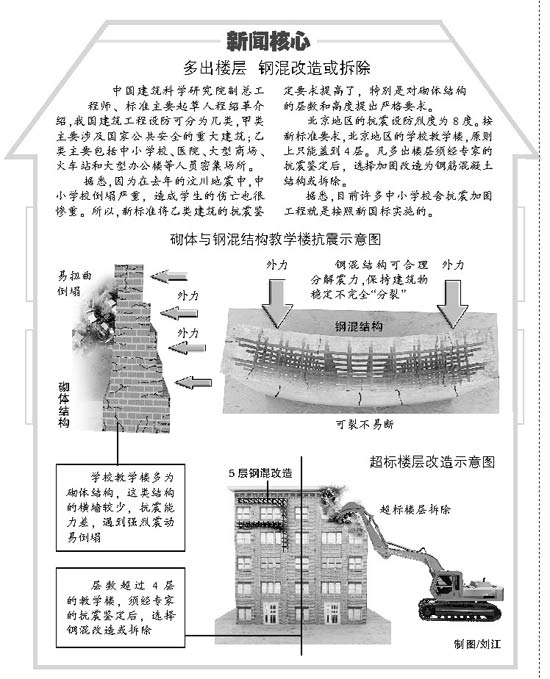 本報(bào)訊(記者 汪紅) 北京教學(xué)樓原則上限高4層。按照北京地區(qū)的抗震設(shè)防烈度為8度,凡多出樓層必須或者拆除,或者將其加固改造為鋼筋混凝土結(jié)構(gòu)。 記者日前從中國(guó)建筑科學(xué)研究院最新獲悉,新修訂的《建筑抗震鑒定標(biāo)準(zhǔn)》國(guó)家標(biāo)準(zhǔn)將于7月1日起正式實(shí)施。記者從中了解到上述信息。 記者同時(shí)了解到,新標(biāo)準(zhǔn)將對(duì)現(xiàn)有建筑的抗震設(shè)防提出明確目標(biāo):經(jīng)過(guò)鑒定加固的建筑,在規(guī)定的后續(xù)使用年限內(nèi)達(dá)到“小震不壞,中震可修,大震不倒”的要求。 據(jù)悉,新標(biāo)準(zhǔn)中凡涉及到設(shè)防目標(biāo)、鑒定內(nèi)容、鑒定方法等要求均為強(qiáng)制性規(guī)定。標(biāo)準(zhǔn)適用新建筑也適用于既有建筑。 標(biāo)準(zhǔn)解讀 必須滿足“大震不倒”的要求 據(jù)標(biāo)準(zhǔn)主要起草人、中國(guó)建筑科學(xué)研究院副總工程師、工程抗震研究所副所長(zhǎng)程紹革介紹,新修訂的《建筑抗震鑒定標(biāo)準(zhǔn)》國(guó)標(biāo)明確提出,經(jīng)過(guò)抗震鑒定加固的建筑,必須滿足:“小震不壞,中震可修,大震不倒”的要求。 也就是說(shuō),經(jīng)過(guò)抗震鑒定加固的建筑,在遭受小震時(shí),一般不受損壞或不需修理可繼續(xù)使用;遭受中震時(shí),可能損壞,經(jīng)一般修理或不需修理仍可繼續(xù)使用;當(dāng)遭受大震時(shí),不致倒塌或發(fā)生危及生命的嚴(yán)重破壞。 程紹革介紹,新國(guó)標(biāo)對(duì)不同年代的建筑規(guī)定了不同的合理的“后續(xù)使用年限”。 所謂“后續(xù)使用年限”是指現(xiàn)有建筑經(jīng)抗震鑒定后繼續(xù)使用所約定的一個(gè)時(shí)期,在這個(gè)時(shí)期內(nèi),建筑只需進(jìn)行正常維護(hù)而不需進(jìn)行大修就能按預(yù)期目的使用,完成預(yù)定的功能。 專家說(shuō),老舊建筑在抗震構(gòu)造措施方面存在先天不足的地方,按新建工程的要求對(duì)這些老舊建筑進(jìn)行加固,不僅技術(shù)難度大,而且所需的加固費(fèi)用也高。 因此,標(biāo)準(zhǔn)對(duì)不同年代設(shè)計(jì)建造的現(xiàn)有建筑提出了“后續(xù)使用年限”的要求,將按年代以及當(dāng)時(shí)設(shè)計(jì)所依據(jù)設(shè)計(jì)規(guī)范分為三檔:70年代及以前建造的房屋,后續(xù)使用年限至少為30年;80、90年代設(shè)計(jì)建造的房屋,后續(xù)使用年限至少為40年;2001年以后設(shè)計(jì)建造的房屋,后續(xù)使用年限為50年。 也就是說(shuō),不同年代建造的房屋,其在規(guī)定的后續(xù)使用年限內(nèi),經(jīng)抗震鑒定加固后,須滿足“小震不壞,中震可修,大震不倒”的抗震設(shè)防目標(biāo)。 標(biāo)準(zhǔn)進(jìn)程 老標(biāo)準(zhǔn)未提及“大震指標(biāo)” 首部《建筑抗震鑒定標(biāo)準(zhǔn)》是在1976年唐山大地震后出臺(tái)的。 此前,我國(guó)并沒(méi)有關(guān)于建筑抗震鑒定方面的國(guó)家標(biāo)準(zhǔn)。唐山大地震后,許多被地震波及地區(qū)的房屋出現(xiàn)損壞,人們開(kāi)始考慮房屋的抗震加固問(wèn)題。 1995年,我國(guó)曾對(duì)《建筑抗震鑒定標(biāo)準(zhǔn)》進(jìn)行過(guò)修訂,去年汶川大地震發(fā)生后,相關(guān)部門開(kāi)始對(duì)標(biāo)準(zhǔn)進(jìn)行1995來(lái)的首次修訂,此次修訂后的國(guó)標(biāo)變化很大。 專家告訴記者,新標(biāo)準(zhǔn)首度明確了現(xiàn)有建筑的抗震設(shè)防的最新目標(biāo)。而老國(guó)標(biāo)只提到應(yīng)滿足“中震不致倒塌傷人”的要求,并未提出大震后應(yīng)達(dá)到的要求。 新聞核心 超標(biāo)樓層鋼混改造或拆除 中國(guó)建筑科學(xué)研究院副總工程師、標(biāo)準(zhǔn)主要起草人程紹革介紹,我國(guó)建筑工程設(shè)防可分為幾類,甲類主要涉及國(guó)家公共安全的重大建筑;乙類主要包括中小學(xué)校、醫(yī)院、大型商場(chǎng)、火車站和大型辦公樓等人員密集場(chǎng)所。 據(jù)悉,因?yàn)樵谌ツ甑你氪ǖ卣鹬校行W(xué)校倒塌嚴(yán)重,造成學(xué)生的傷亡也很慘重。所以,新標(biāo)準(zhǔn)將乙類建筑的抗震鑒定要求提高了,特別是對(duì)砌體結(jié)構(gòu)的層數(shù)和高度提出嚴(yán)格要求。 北京地區(qū)的抗震設(shè)防烈度為8度。按新標(biāo)準(zhǔn)要求,北京地區(qū)的學(xué)校教學(xué)樓,原則上只能蓋到4層。凡多出樓層須經(jīng)專家的抗震鑒定后,選擇加固改造為鋼筋混凝土結(jié)構(gòu)或拆除。 據(jù)悉,目前許多中小學(xué)校舍抗震加固工程就是按照新國(guó)標(biāo)實(shí)施的。 |